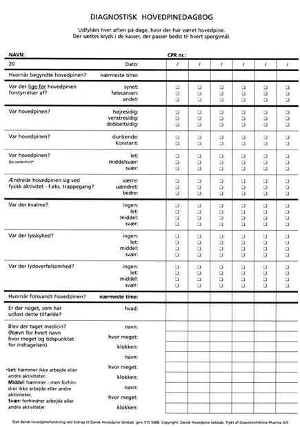 Udfyld dagbog over din hovedpine og tag den med til din læge